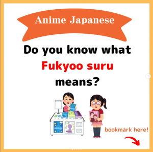 Today’s Anime Japanese is Fukyoo suru. ☺️